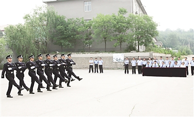 “稍息——立正——全省检察机关司法警察第10期警务实战技能综合演练现在开始!”随着指挥员的一声号令,全体参训干警挺直腰板、抖擞精神,齐刷刷列队向观礼台行注目礼。