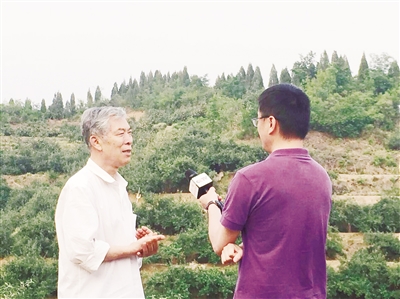 刘秀礼在岗底村接受中央电视台采访。