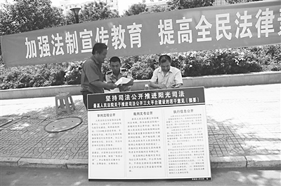 为推进“阳光司法”促进司法公正,6月6日上午,阜城县人民法院组织部分法官走上街头,通过悬挂宣传标语、设置宣传展板、发放宣传资料、现场接受群众咨询等形式开展了法律宣传活动。此次活动中,该院共发放宣传资料200余份,接受群众咨询30余人次,受到了广大群众的欢迎,收到了良好的社会效果。