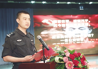 6月20日,邢台特警支队开展了迎“七一”“两学一做”主题演讲、知识竞赛等系列警营文化活动。演讲中,法治大队梁栩章回顾了特警便衣打现行工作从无到有、从弱到强的艰辛历程,特别是对街头生擒飞车贼的精彩叙述,将现场观众深深吸引;应急处突大队徐海龙回顾了特警精英征程千里、赤胆远征的事迹……演讲最后,支队政委郗亚明深情朗诵一首原创散文诗《共产党员的骨骼》,“每一名党员,淬炼一身铮铮铁骨;每一个支部,锻造钢铁堡垒一座”,气势磅礴的语言,恢弘大气的音乐,将现场气氛推向高潮。