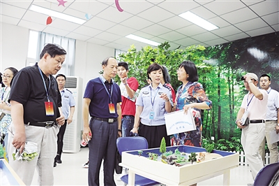 代表们还参观了测量室、实景沙盘室、抗复吸指导室、咨询室、音乐治疗室等专业心理治疗科室。民警介绍,这些科室可以对戒毒人员进行全方位、多角度、深层次的心理矫治,为稳定戒毒人员思想情绪发挥了积极的作用。