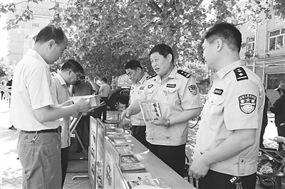 图为6月25日,民警在主要街道开展执法公开宣传活动。 本报记者 张哲 摄