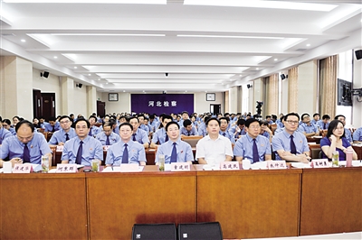 童建明等领导同志与省检察院机关党员干警一同观看演讲活动。