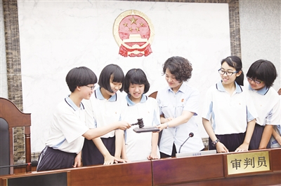 7月12日,石家庄市桥西区人民法院开庭审理一起盗窃案件,该市第六中学的20余名学生旁听庭审。学生们通过旁听法庭调查、法庭辩论、最后陈述、当庭宣判阶段的审理,从鲜活的案例中接受了法治教育,增长了法律知识。图为庭审前,法官就法庭规则、刑事案件审判流程给同学们做了详细介绍,还带领同学们试敲法槌。本报记者 栗晓烁 摄