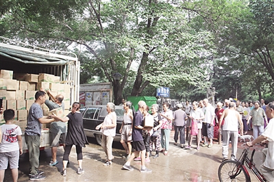特大暴雨使石家庄市区地表水受到污染。为缓解居民用水紧张状况,7月23日,省高管局服务管理中心连夜调度所属固安路缘泉水业分公司,紧急配齐2000件共3万瓶550ml饮用矿泉水,在石家庄市尖岭小区、市人事局宿舍、路桥小区、青园小区、平安小区,为市民免费发放。