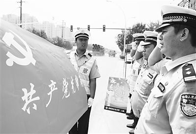 日前,沧州市公安交警二大队“共产党员先锋岗”正式亮相市区永济东路十三化建路口,该大队一中队党员先锋岗民警面对党旗重温入党誓词。大队长郭拥军表示,设立“共产党员先锋岗”增强了党员民警的荣誉感、责任感和使命感,激发了党员民警爱岗敬业、服务奉献的自觉性。据了解,该大队将全面推行和设立“共产党员先锋岗”,进一步改变工作作风、树立良好窗口形象,让每名党员和民警以态度和蔼、热情周到、文明规范、高效便捷的工作效率,为来大队办事的各界群众提供全方位优质服务,全面提升大队民警的整体素质和形象。