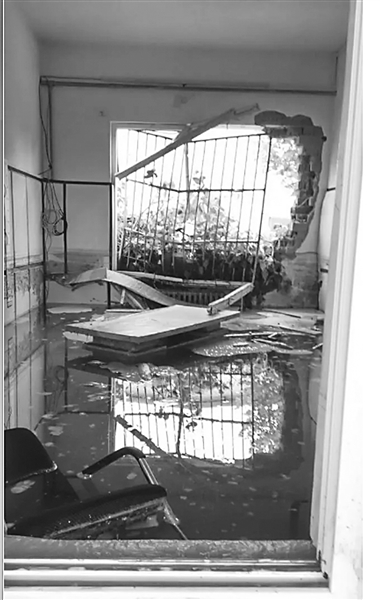 洪灾过后,园区派出所里一片狼藉,电脑、打印机等办公设备被水浸泡,桌椅板凳与日常用具东倒西歪、七零八落,到处都是洪水消退后留下的各种杂物和厚厚的淤泥,在高温下不时发出一阵阵酸臭味。