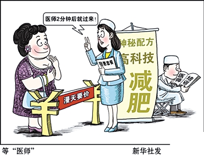 进入夏季,不少减肥机构推出各种特惠套餐吸引消费者。“新华视点”记者在多地调查发现,火热的减肥市场上,从传统的中医减肥到流行的高科技仪器减肥,一个疗程动辄数千元,但有些机构没有执业许可证,不少“医师”培训两分钟就上岗,使用的一些产品涉嫌假冒伪劣。
