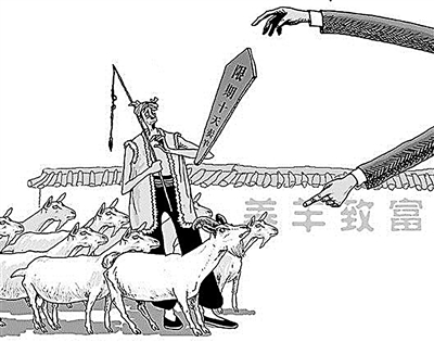 近日,山西蒲县多户山羊、绵羊养殖散户接到通知,政府要封山禁牧,要求限期10天内把羊卖掉,否则就要罚款。突如其来的“卖羊令”让农户难以接受。迫于压力,他们有的把羊贱价卖给羊贩子,有的则赶着羊群、拖家带口离开蒲县。 王铎 作