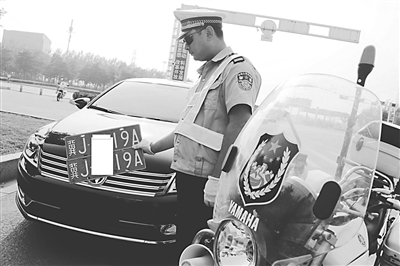 入秋以来,沧州市交警支队加大了对机动车悬挂假牌、套牌以及无牌等涉牌交通违法行为的查处力度,很大程度上震慑了此类交通违法行为。 图为8月15日7时20分,一部故意不悬挂号牌的机动车被沧州市执勤交警查扣,执勤交警依法对该车驾驶人李某罚款200元,对驾驶证一次记12分。 孔大龙 孙明山 摄