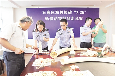 本报讯 (记者 郑伟 通讯员 李永 李莉)近日,石家庄海关缉私局在北京海关配合下,连续在邮寄渠道查获3批走私珍贵动物制品,涉及走私象牙制品101.4公斤,抓获犯罪嫌疑人2名,这起案件是今年以来全国海关查获的最大一起走私象牙制品案件。