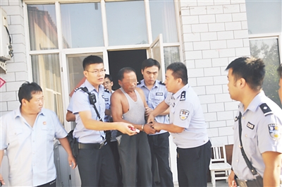 图为干警对拒不执行法院判决的被执行人进行司法拘留。