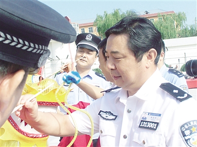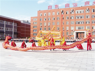 这是演出队自今年7月组建以来的首次大型演出。首先出场的是挥舞两条长龙的十几个服刑人员,他们身穿鲜艳的演出服,精神抖擞。省监狱管理局教育改造处处长刘德才和鹿泉监狱监狱长王志利为两条彩龙点睛,对服刑人员的改造寄予希望。