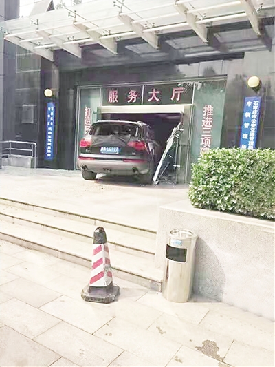本报9月21日讯 (记者 赵媛媛)今天上午,一辆奥迪Q7轿车在石家庄市街道上撞倒行人后疯狂前行,最后撞进石家庄市裕华区交警大队业务大厅。肇事司机被民警当场抓获。据裕华区警方透露,肇事司机涉嫌毒驾。