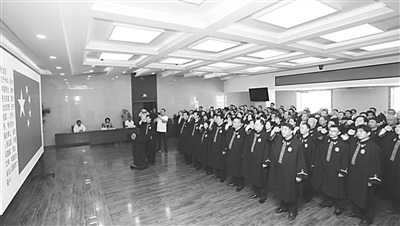 10月8日上午10时,石家庄市中级人民法院组织入额法官举行了隆重庄严的宣誓仪式。首批入额法官在石家庄市中级人民法院党组书记、院长崔存利的带领下,面向国旗和宪法,举起右拳,庄严宣誓。市人大常委会副主任王增飞、市政协副主席葛瑞芳、市委政法委副书记孟建中及部分人大代表、政协委员出席仪式并担任监誓人。