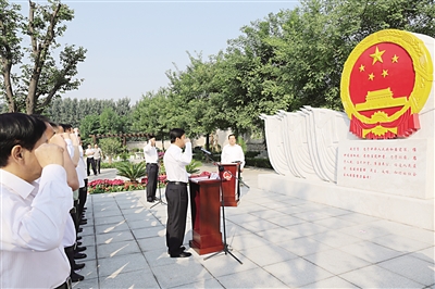 本报讯 (记者 鲍娜军)“我宣誓:忠于中华人民共和国宪法,维护宪法权威,履行法定职责,忠于祖国、忠于人民……”9月29日上午,平山县宪法宣誓广场启用,上百名党政干部、公检法司等公职人员代表参加宣誓。据介绍,这是全省首个宪法宣誓广场。