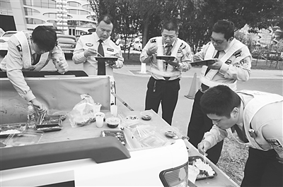 10月10日至10月13日,第九届中国沧州国际武术节在沧州举行。为确保此次盛会圆满成功,沧州市交警支队精心谋划交通保障方案,科学用警确保武术节辖区道路安全畅通。图为民警在执勤间隙就餐。