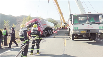 本报讯 (记者 梁燕 通讯员 马海兵)10月9日中午12时许,张家口怀安县110国道上,一辆满载33吨甲醇罐车侧翻,甲醇泄漏。