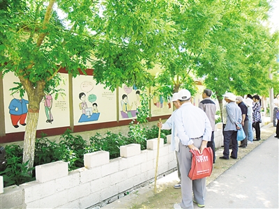 卢龙县司法局结合农村面貌改造提升活动,在该县蛤泊镇青龙河村主街道两侧绘制了120米的法治文化墙,把“严肃的法律条文”变成“形象生动的法律漫画”,宣传《人民调解法》、《公证法》、《河北省法律援助条例》、《信访条例》、《婚姻法》、《继承法》等与农民息息相关的法律法规。闲暇之余,到文化墙前浏览法律漫画已成为村民们的一种习惯。
