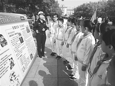 10月10日,滦县县委宣传部、县文明办组织交警大队、团委、教育局等单位,举办了主题为“文明在路上”文明出行志愿服务培训活动。交警大队民警就志愿服务中需要注意的事项、交通劝导的方式、如何站位、指挥手势、做好自身安全防护等内容对志愿者进行了详细讲解。图为学生志愿者在展板前听取讲解。 董亚辉 摄