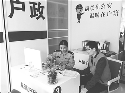 截至10月12日,永清县公安局陆续将全局15个派出所户籍室改造完毕投入使用,其中最大的变化就是拆除了隔离在民警和办事群众中间的柜台,变成了办公桌前民警与办事群众肩并肩式地办公。