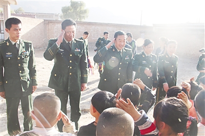 10月24日,张家口市消防支队在支队红门捐助站及蔚县下宫村开展了一系列爱心资助慰问活动。支队领导及官兵代表带着官兵们捐助的款物,来到蔚县下宫村小学,向36名特困学生捐助了新书包、吊扇等物品,并走访慰问了该村困难家庭。据了解,此次系列活动共筹集13157元,捐助物资327份,捐献衣物、文具玩具865件,书籍493册。图为消防官兵向困难学生捐赠物品。 本报记者 梁燕 摄