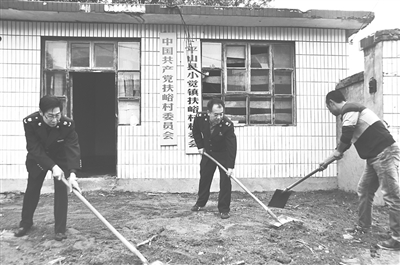 平山县国税局税收志愿者近日先后开展了扶贫助困、便民服务、义务劳动、社会实践、敬老爱老和义务献血等一系列志愿服务活动,受到了社会各界的好评。图为该局两名税务干部,放弃休息日,来到扶贫村扶峪村同村民一起平整硬化村两委班子院落地面。 周建华 摄