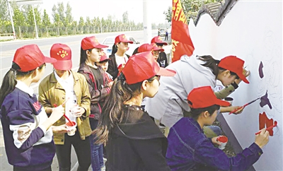 隆尧县开展大型志愿者手绘文化墙活动