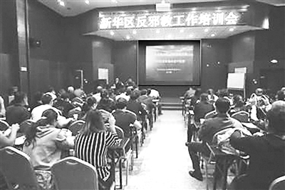 近日,石家庄市新华区邀请从事反邪教工作的专业人士,对各乡镇和街道主管副书记、工作人员及社区居委会书记、村委会治保主任等基层一线的反邪教工作队伍,开展反邪教培训,讲解各类邪教的相关知识及处理邪教问题的经验做法。 (冰泉)