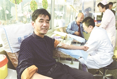 秋收已过,为了方便农民义务献血,河北省血液中心的献血车开到了农村,新乐市不少农民在农闲之时积极参与无偿献血,奉献爱心。图为10月30日,农民在新乐市东名村村口的献血车上义务献血。