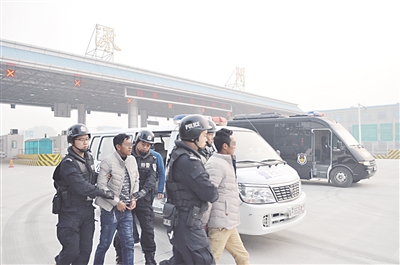 图为11月3日上午,犯罪嫌疑人被押解回涿州。 叶海潮 摄