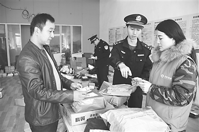 邯郸肥乡区公安局民警对快递企业营业网点进行检查