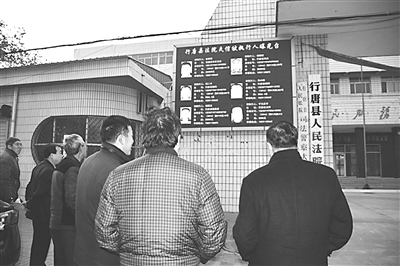 连日来,行唐县人民法院门口的大屏幕24小时滚动播放“失信”被执行人的各种信息,对36名“老赖”进行全面曝光。此举挤压了失信被执行人“赖”以生存的空间,有效打压了“老赖”的不法行为。