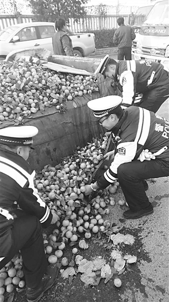 12月21日,一辆小货车在正定西关加油站路口发生交通事故,车里的蜜桔散落一地。在此路口执勤的正定县交警大队协警蔡彦虎立即赶到现场维持秩序,并将情况及时汇报。周围执行任务的民警迅速赶到事故路口,紧急处理交通事故、疏导分流车辆,同时,将桔子快速地捡回车内,最大限度地减少货主损失。 赵动江 谢华聪 摄