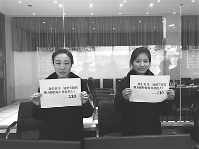 图为接警民警向社会倡议:请把有限的警力留给最需要的人!
