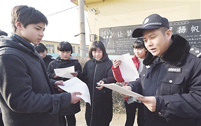 寒假将至,为进一步提高学生的安全意识,滦县公安局与辖区学校共同开展了发送“致全体学生及家长的一封信”活动,教育学生在假期里注意防火、防盗、防骗、防爆,注意食品安全等,做一个文明守纪的好学生。图为滦县公安局滦州派出所民警到学校发放公开信。 唐久平 刘洪超 摄