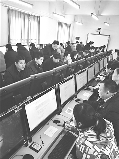 2016年度依法行政现场考核于1月16日正式开始,省依法行政考核组通过听取依法行政工作汇报、现场察看等方式对石家庄市依法行政情况进行考核。并随机抽取40名行政执法人员和5个县区主管法治的领导进行法律知识测试。图为法律知识测试现场。