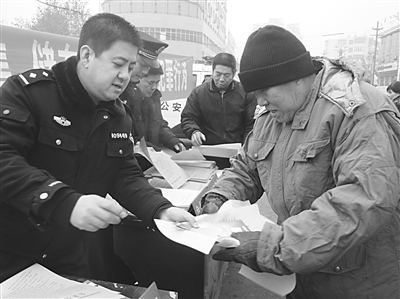 春节期间,石家庄市公安局矿区分局组织民警深入基层、深入群众,开展防爆、防电信诈骗等各类宣传活动,从解决老百姓最关心、最直接、最现实的利益问题着手,真正把解难帮困工作落到实处。图为民警在向群众发放宣传材料。 温彦文 摄