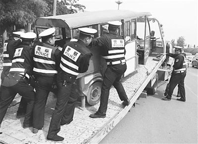 交警对非法营运三轮车展开攻坚行动
