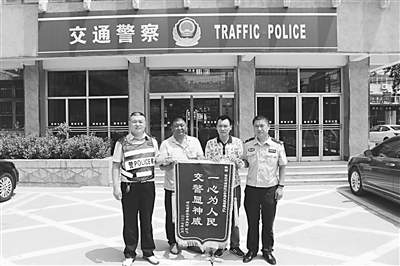 保定市满城区交警大队民警在处理两辆货车追尾事故时,迅速展开侦破工作,经过一天一夜的蹲守,将肇事司机吴某抓获。近日,事故受害人田某的家人来到该大队,亲手送上一面绣有“一心为人民 交警显神威”字样的锦旗,对民警快速反应、迅速破获交通肇事逃逸案表示感谢。