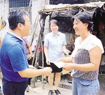 为深入了解精准帮扶村的脱贫情况,加快其脱贫步伐,7月11日,石家庄市桥西区人民法院院长吉玉刚带队,组织分包院领导班子及干警一行16人,赶赴该院精准扶贫点平山县小觉镇石占村,深入到22家分包帮扶贫困户家中进行走访慰问,详细了解扶贫工作开展一年来他们生产生活发生的变化,跟踪帮扶项目的成效,并给其中3户特别困难的家庭送去了慰问金。同时,吉玉刚与小觉镇有关领导就扶贫工作进行座谈。图为吉玉刚为贫困户送去慰问金。 本报记者 张乔 摄