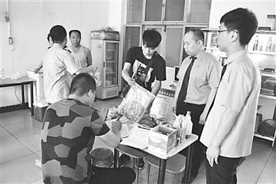 为打击危害食品安全违法犯罪行为,切实加大食品安全保障力度,7月7日,武强县检察院与武强县食品和市场监督管理局联合开展了暑期食品安全专项检查。检查中,检察干警对执法人员提取送检、告知、行政处罚决定等执法过程进行了监督,对规范性操作提出了合理化建议,并要求执法人员将检查中发现的刑事案件线索及时移交公安机关立案侦查,严厉打击危害食品安全的犯罪活动,依法维护人民群众的利益。图为检察干警和执法人员到快餐店检查。 刘金英 张浩威 摄