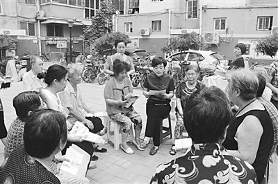 近日,邯郸市食药监局联合人民路街道光明社区深入龙盘锦绣花园小区开展食品安全宣传活动,进一步提升公众食品安全意识,引导公众参与食品安全社会监督,营造人人关心食品安全的浓厚氛围,促进共治共享。图为社区工作人员讲解食品安全常识。