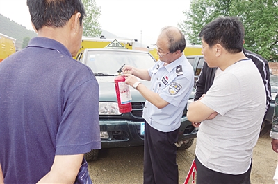 为进一步提升危险品运输从业人员安全生产意识,增强从业人员预防交通事故发生的能力,消除安全隐患,日前,隆化交警在辖区组织危险品运输公司驾驶人进行安全培训和现场演练。图为民警在指导危险品运输车辆驾驶人正确使用消防器材。