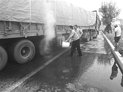 直到货车轮胎温度逐渐恢复正常后,在三名执勤人员的带领下,驾驶员慢慢把货车开到道路右侧。驾驶员王师傅激动地说:“要不是你们及时帮忙排除隐患,有可能出大麻烦了。”