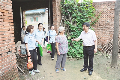 7月25日上午,正定县人民法院组织干警深入新城铺镇东白庄村和中咬村,为30个贫困户送去食用油、大米等慰问品。正定法院组织干警与东白庄村17个贫困户和中咬村13个贫困户结成帮扶关系,并明确责任人、帮扶人、保障人,除定期开展慰问活动外,还详细制定了脱贫计划,以帮助群众早日走上脱贫致富之路。图为正定法院副院长王锡敏一行到东白庄村慰问困难群众。