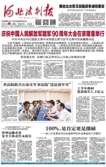 《河北法治报》(电子版)的一切内容(包括但不限于文字、图片、PDF、图表、标志、标识、商标、版面设计、专栏目录与名称、内容分类标准以及为读者提供的任何信息)仅供河北法治报、网读者阅读、学习研究使用,未经河北法治网及/或相关权利人书面授权,任何单位及个人不得将《河北法治报》(电子版)所登载、发布的内容用于商业性目的,包括但不限于转载、复制、发行、制作光盘、数据库、触摸展示等行为方式,或将之在非本站所属的服务器上作镜像。否则,河北法治网将采取包括但不限于网上公示、向有关部门举报、诉讼等一切合法手段,追究侵权者的法律责任。
