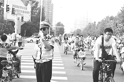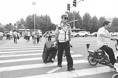执勤交警崔近伟告诉记者:“在早高峰这2个小时内,我们需要喊话近千遍,一个早班下来都会口干舌燥。我们通过喊话提醒过往车辆和行人遵章守法。自今年5月份推行以来,人车混行、斑马线前不礼让行人等交通不文明现象已经明显改善。”