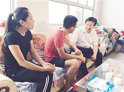 图为孟繁浩看望崔靖祥的亲属。 本报记者 田宪忠 摄
