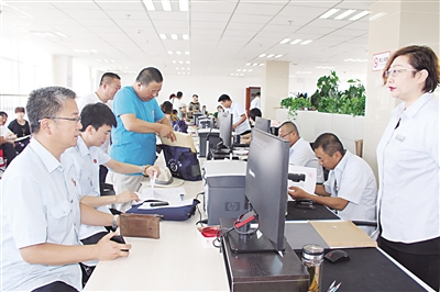 张家口市桥东区法院执行局执行法官积极为申请人做好案件执行的“最后一公里”服务,努力使执行案件真正做到案结事了,切实保护案件申请人的权益。图为执行法官刘永平、书记员成宇强在张家口市不动产登记中心,为申请人办理有关不动产的手续。 吴淑艳 摄